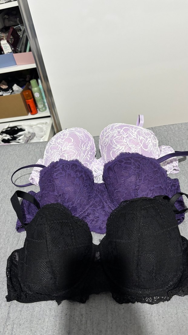 Koyu mor, siyah renkte ve lila renklerinde sütyenler. Ürünleri aldım hiç giyemedim 15 kilo verdim büyük geldiler. Şık dantelli. İsteyenlere detaylı görüntülü olarak gösterebilirim. 85C balenli ve desteksiz isteyenlere üçünü birden isteyenlere ayrı ayrı satış yapabilirim.