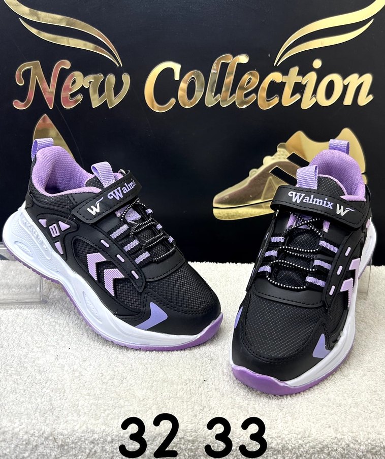 Mor detaylı, renkli baskılı, velcro bantlı kız spor ayakkabısı. Kauçuk tabanlı, Walmix W markasına ait sokak tarzı model.