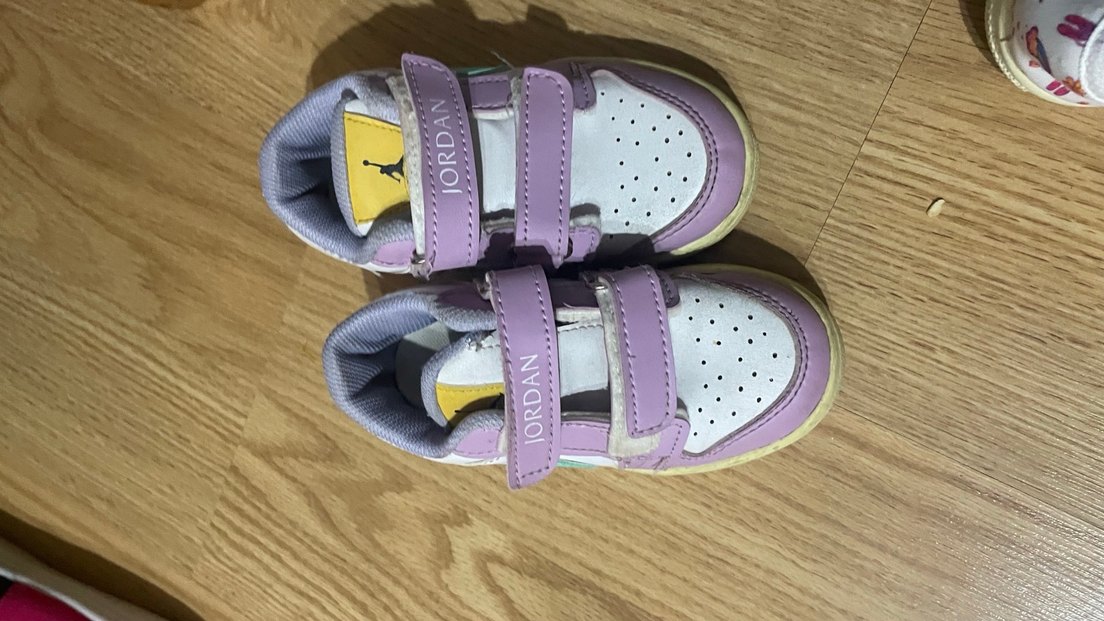 Mor pastel renkli kız çocuk spor ayakkabısında baskılı desenler ve kolay kullanım için velcro bantlar bulunur. Kauçuk tabanlı, sokak stiline uygun.
