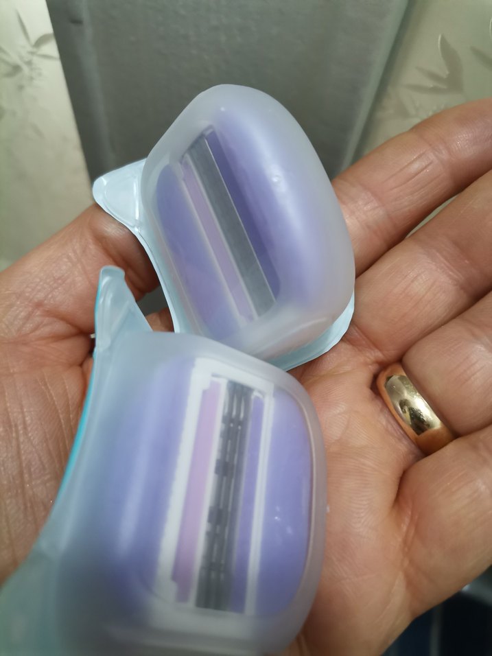 Pastel mor renkte kadın tıraş bıçağı ve yedek başlıklar, pürüzsüz tıraş için tasarlanmıştır.