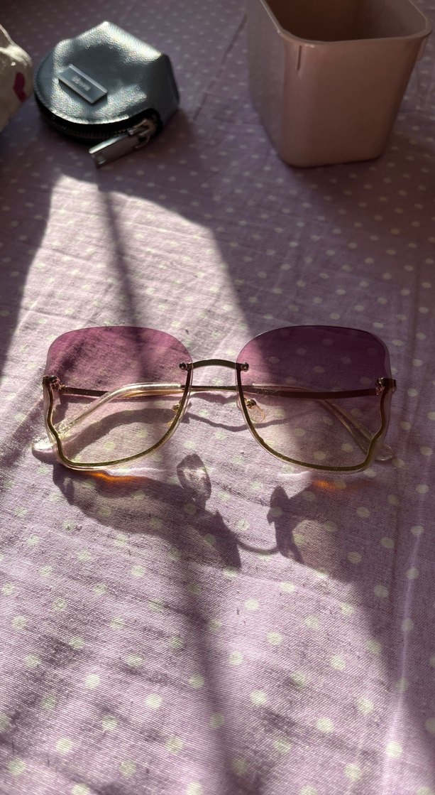 Mor transparan camları ve pastel çerçevesiyle bohem, retro tarza uygun vintage kadın güneş gözlüğü. ️
