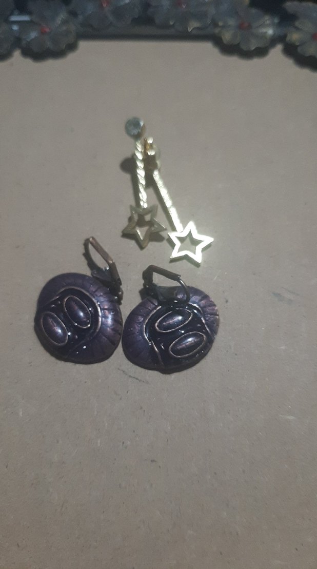 Mor vintage tarzda, yılan desenli ve tokalı kısa uzunlukta küpeler. Bohem, retro tarz için günlük kullanıma uygundur. ikisi birlikte 120 tl