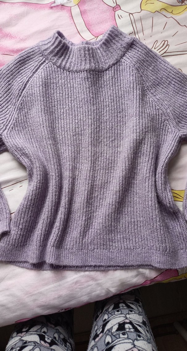 Mor renkli, balıkçı yaka ve uzun kollu örgü kadın kazak, rahat ve bol kesimdir. Desensiz sade tasarımı ile günlük kullanıma uygundur.