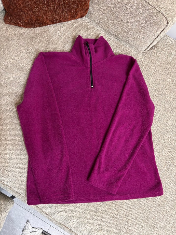 Bu polar, yarım fermuarlı yüksek yakalı ve uzun kolludur. Rahat kesimi ve düz deseniyle canlı mor renkte, günlük kullanıma uygundur. Sayılı giyildi kusuru yok