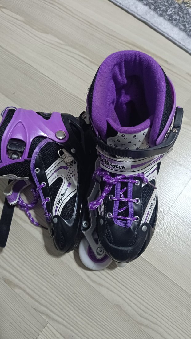Koyu mor renkli, yılan desenli çocuk patenleri. Kauçuk malzemeden üretilmiş, cırt cırtlı bant ile sabitlenir. Spor ve athleisure tarzına uygundur. 35-38 numara çok az kullanılmış tertemizdir.