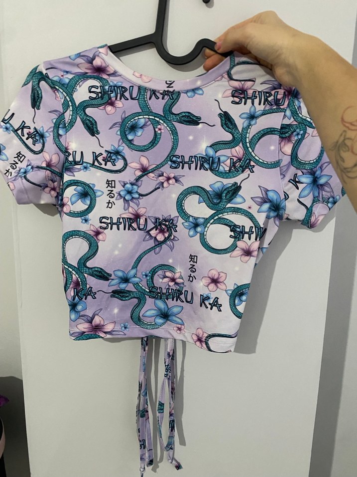 Mor Yılan Desenli Crop ve İspanyol paça likralı takım