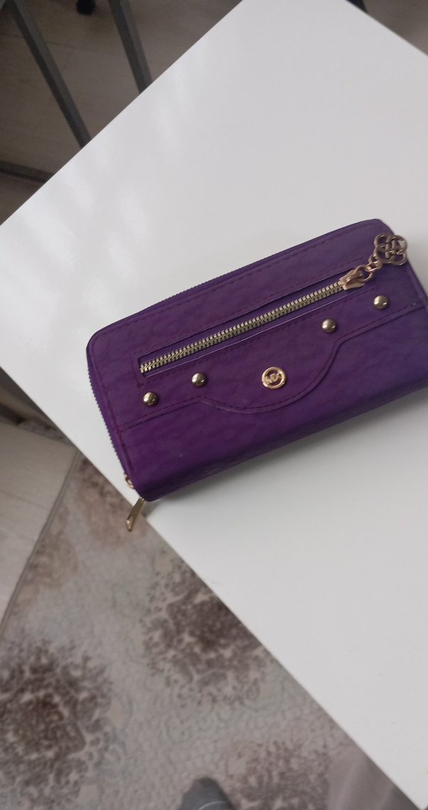 Mor yılan desenli süet kadın cüzdanı, fermuarlı bölmeleriyle renkli ve minimalist, trend görünüme sahip.