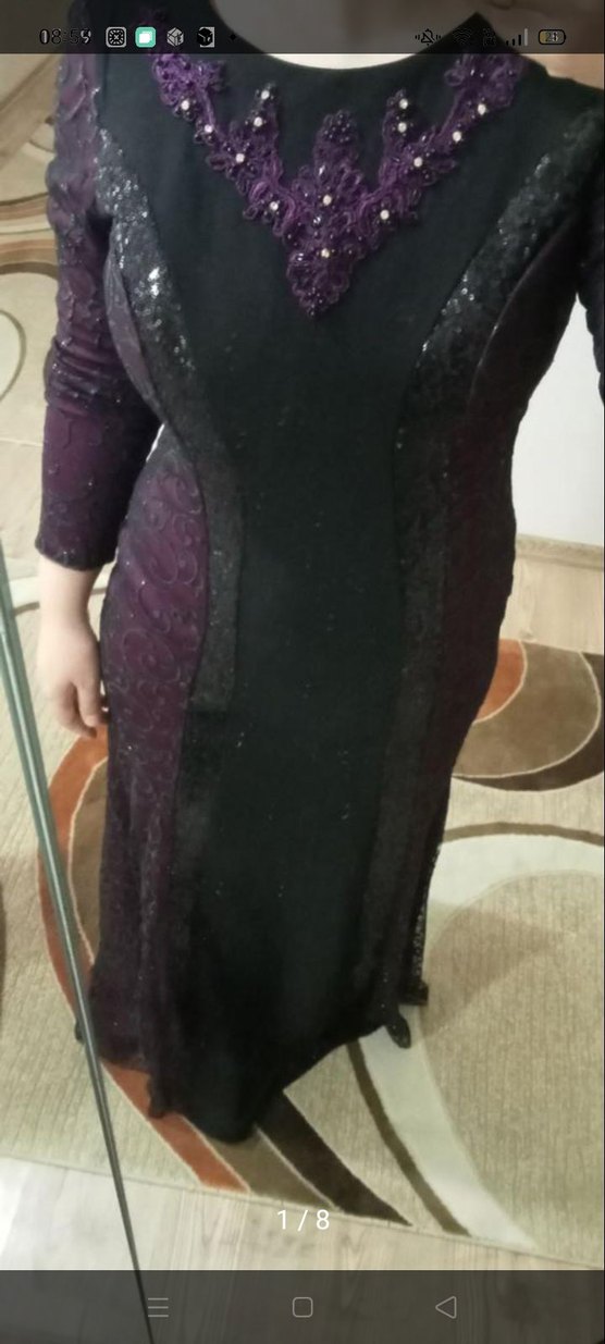 Mor Yılan Desenli Uzun Kollu Gotik Abiye Elbise