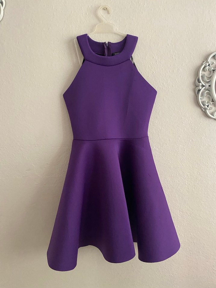 Mor renkli, yüksek yakalı ve kolsuz midi elbise. Bel kısmı oturan, pileli etek detayına sahip, desensiz kumaştan yapılmıştır. Parti için uygundur. Dalgıç kumaştır kabarık durur