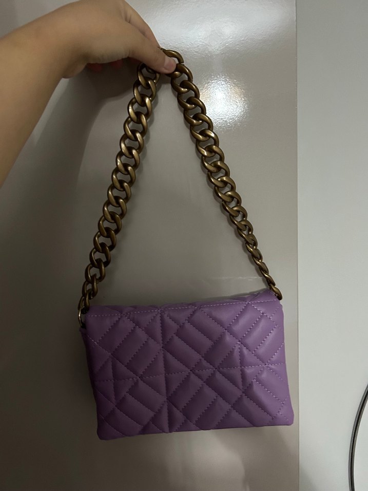 Mor Zincir Detaylı Deri Kadın Çanta