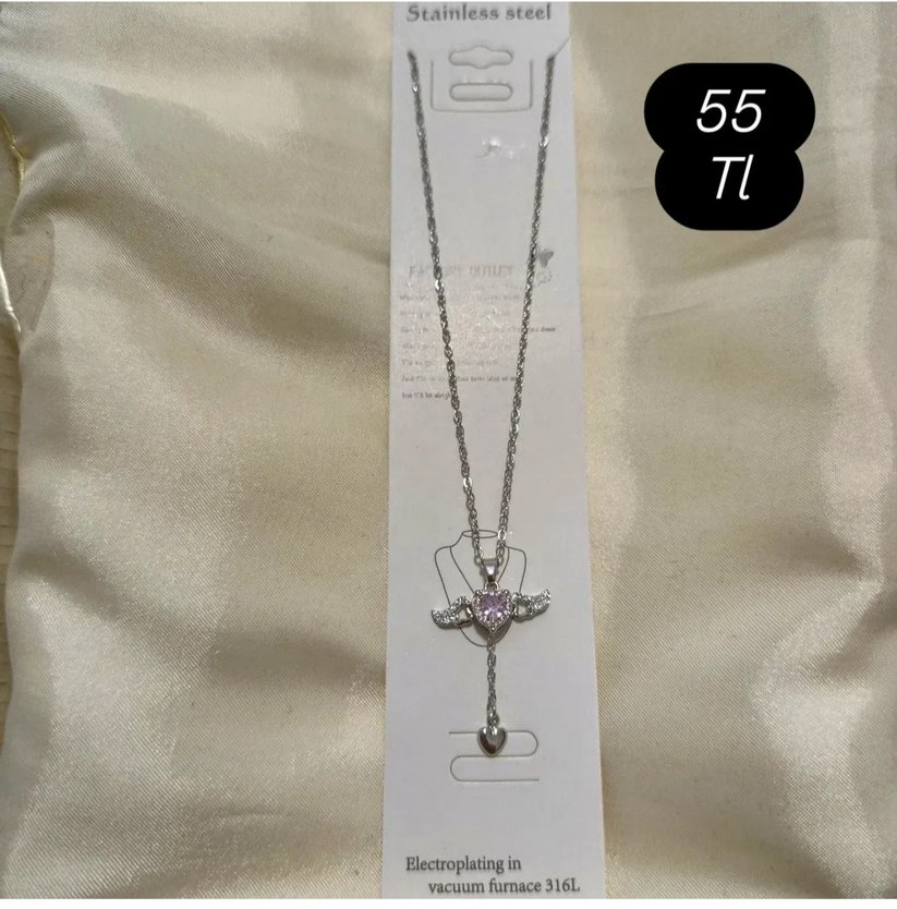 Paslanmaz çelikten, vakum fırınında elektro kaplama yapılmış, mor renkli, zincir detaylı, normal midi uzunlukta minimal kadın kolye.