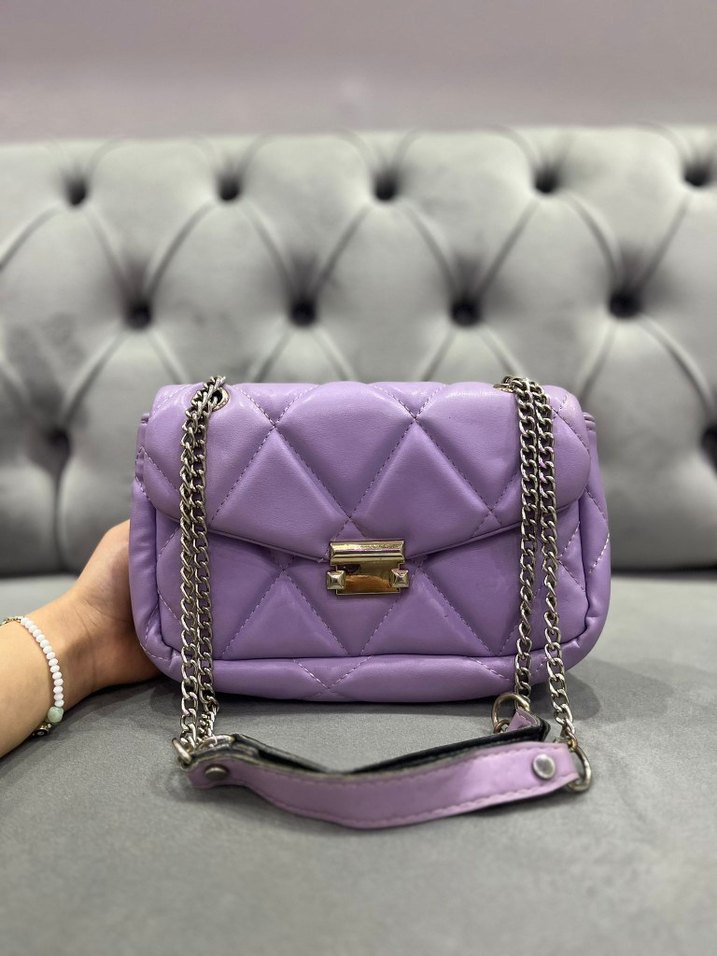 Mor Zincir Detaylı Modern Klasik Deri Çanta