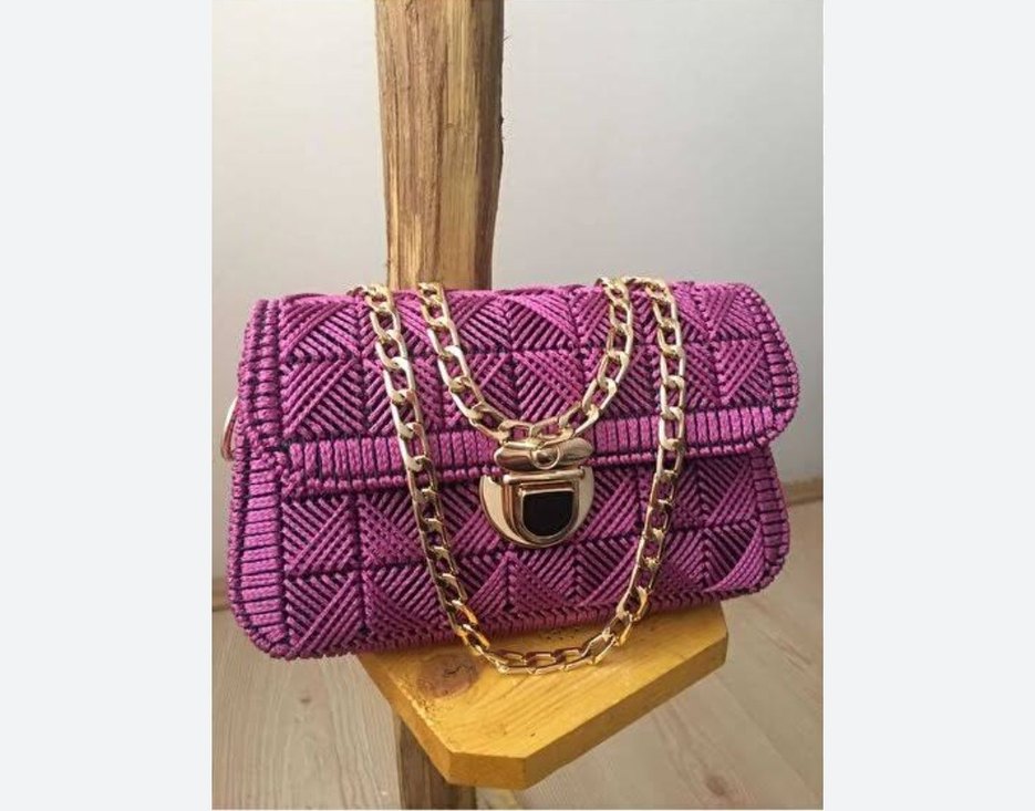 Mor Zincir Detaylı Örgü Kadın Çanta