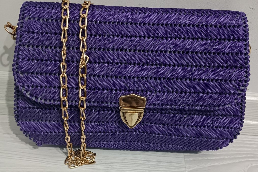 Mor Zincir Detaylı Örgü Kadın Çanta