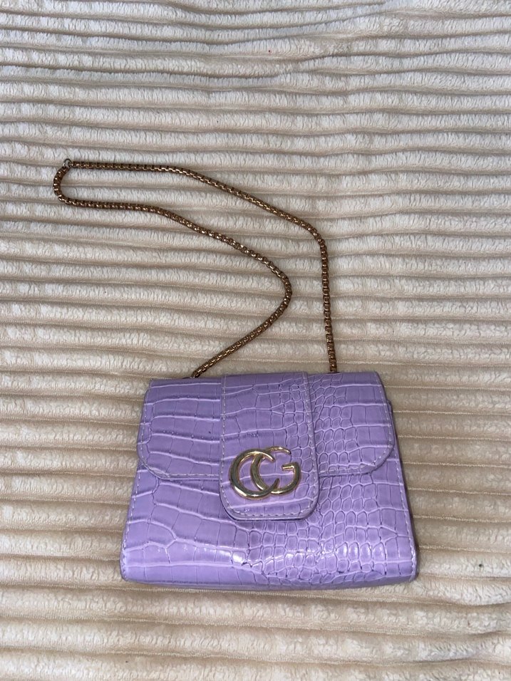 Mor Zincir Detaylı Yılan Desenli Deri Çanta