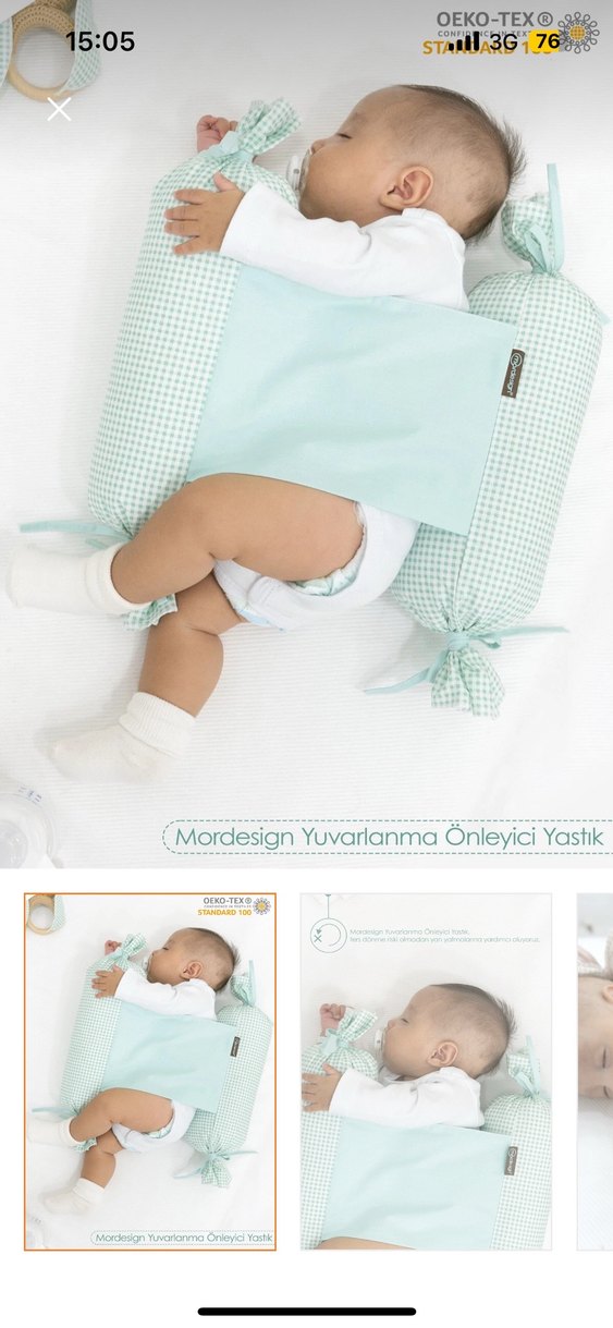Mordesign bebekler için yuvarlanma önleyici yastık, turkuaz renkli kareli desene sahip yumuşak pamuk kumaştan üretilmiştir. Uyku sırasında bebeğin güvenliğini sağlar. ️