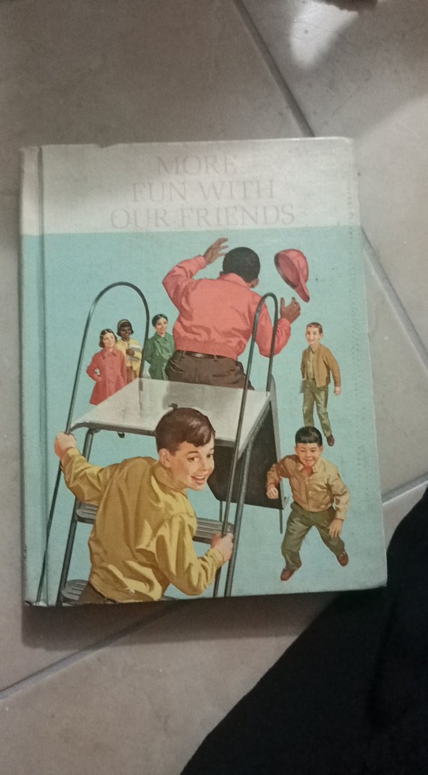 "More Fun with Our Friends" adlı mizah kitabı, çocukların masa etrafında oynadığı eğlenceli çizimlerle dolu.
