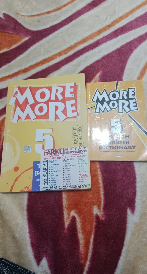 More More 5 İngilizce-Türkçe sözlük ve örnek sınav kitabı içeren dil öğrenme seti.