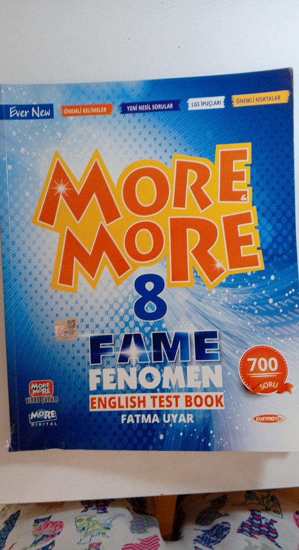 Fatma Uyar imzalı More & More 8 Fenomen İngilizce test kitabı, 700 soruluk yeni nesil ve önemli kelimeler içerir.