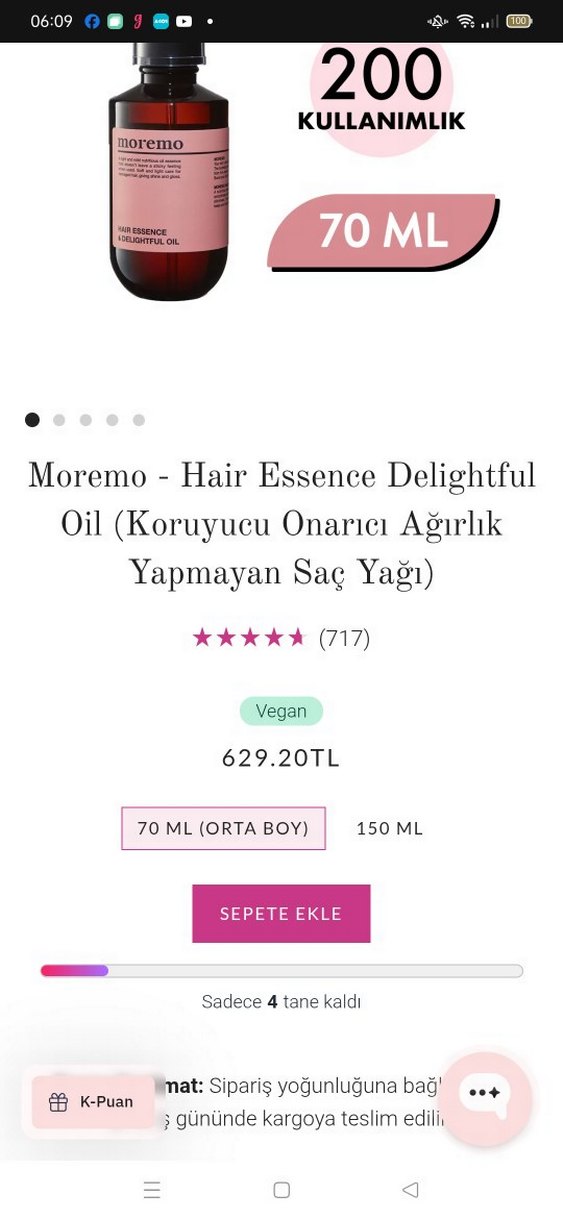 Başta elektrikli ve mat görünümlü saçlar olmak üzere tüm saç tiplerinin kullanımı için uygundur. Ürün hiç açılmadı, Avrupa'da mağazadan almıştım. Fiyat sondur.