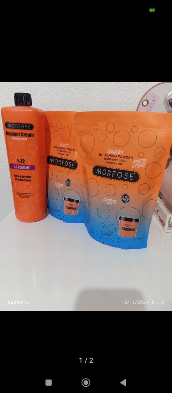 Morfose markalı saç açıcı toz ve %12 oksidan krem, saç açma işlemi için kullanılır. Kolay uygulanır ve etkili formüle sahiptir.