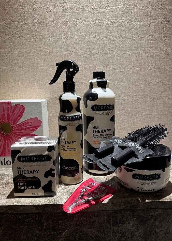 Morfose kremsi saç şampuanı Saç maskesi Saç parfümü Fön sütü 2 adet fırça Solingen Et pensi