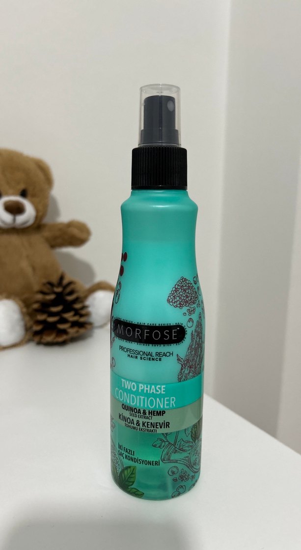 Morfose iki fazlı saç kremi, kinoa ve kenevir özleriyle saçı kolay taranabilir ve besler. 150 ml sprey şişededir.