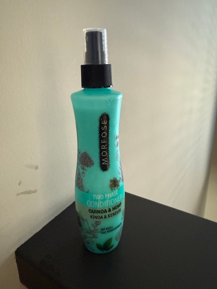 Morfose quinoa ve kenevir içeren iki fazlı saç kremi, hafif formülüyle saçları yumuşatır ve besler. Sadece iki defa kullanıldı saçıma uygun olmadığı için satıyorum.