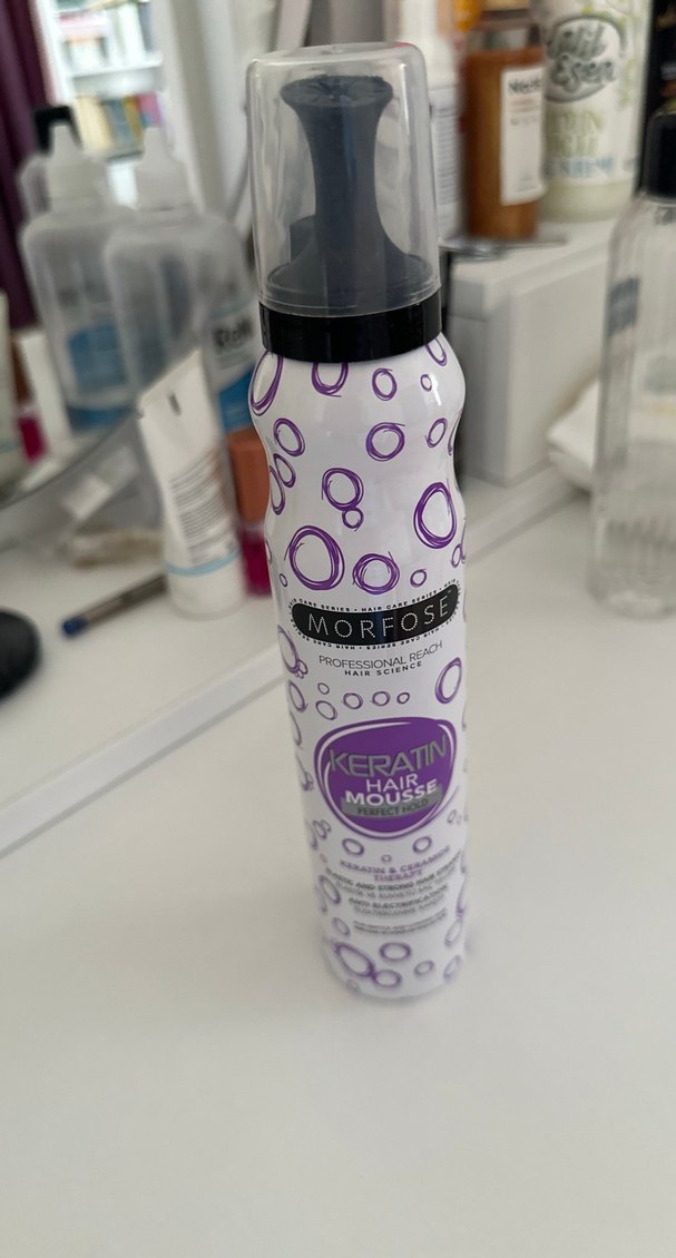 Morfose Keratin Saç Köpüğü, keratin içeriğiyle saçlara güç ve parlaklık verir. Hafif tutuş ve hacim sağlar. ♀️