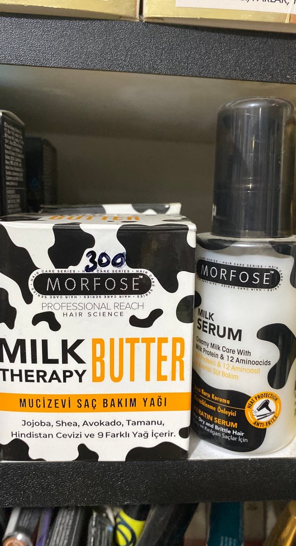 Morfose Milk Butter Therapy saç bakım yağı; jojoba, shea, avokado, tamanu ve hindistancevizi gibi 9 farklı yağ içerir. Saçı besler ve 12 aminoasit ile korur.