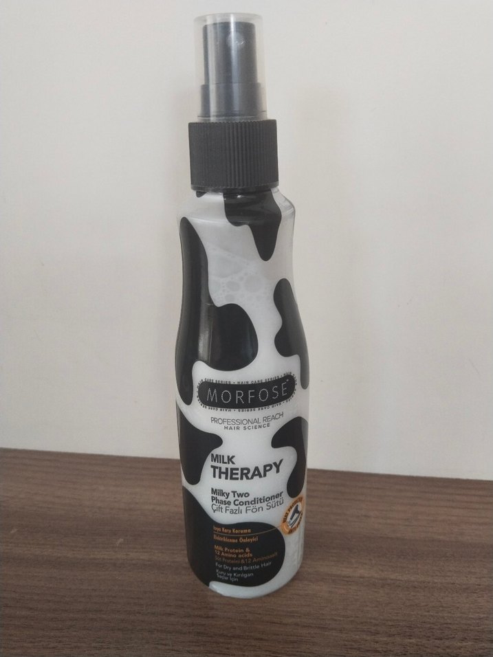 Morfose Milk Therapy, saçları nemlendiren ve koruyan hafif yapılı süt bazlı bir saç spreyi. Saçları yumuşak ve kolay şekillendirir.