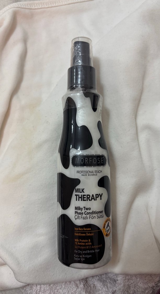 Morfose Milk Therapy, süt proteini ve keratin içeren, kuru ve kırılgan saçlar için besleyici ve koruyucu çift fazlı saç kremi spreyidir.