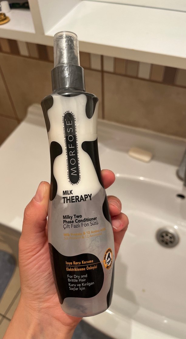 Morfose Milk Therapy, ısıya karşı koruma sağlar ve elektriklenmeyi önler. Kuru ve kırılgan saçlar için çift fazlı süt kremidir.