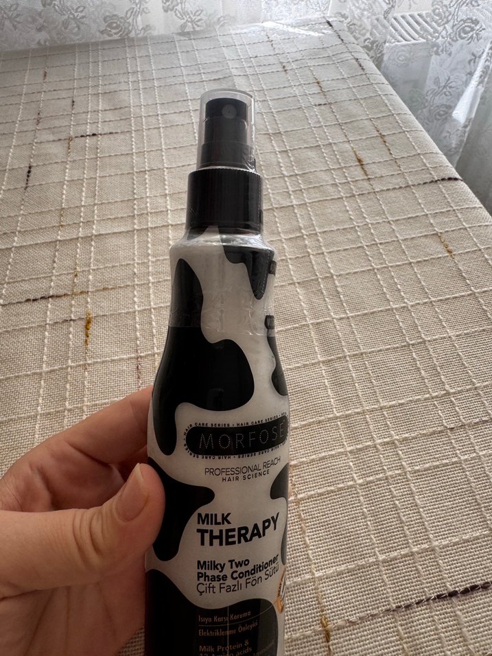 Morfose Milk Therapy, çift fazlı sütlü formülüyle saçları besleyen ve koruyan saç kremi spreyi. Saç sağlığı ve yumuşaklığı sağlar. ♀️