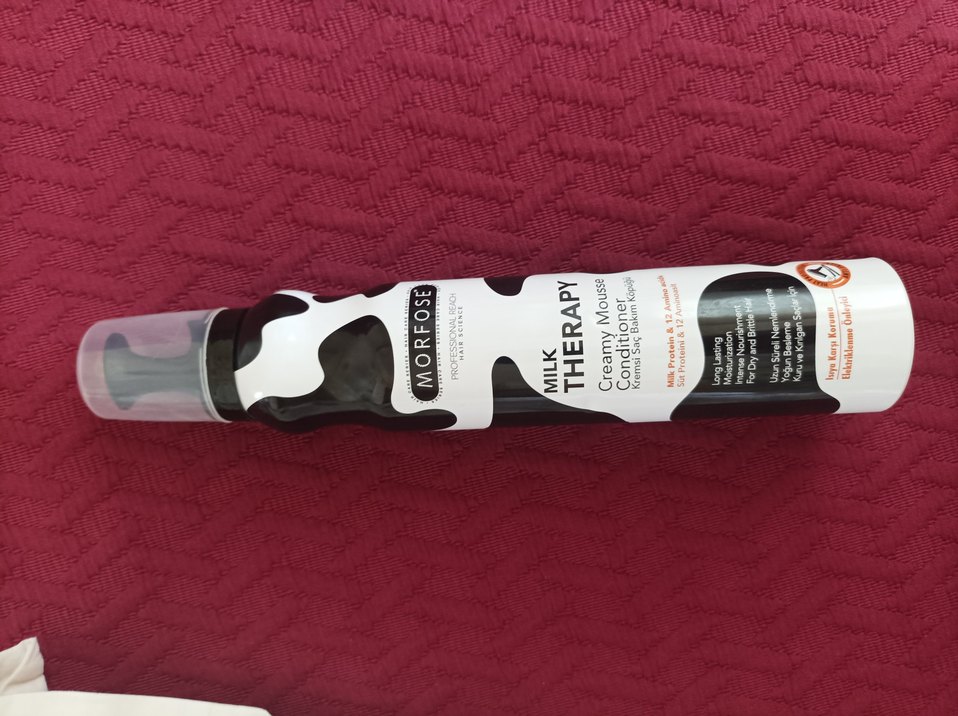 Morfose Milk Therapy Krem Köpük, saçları süt proteini ve keratinle besleyerek yumuşatır ve bakım sağlar. kapağı biraz düşünce hasar gördü ama hala sağlam iki kere falan kullanıldı sadece