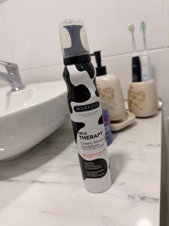 Morfose Milk Therapy krem köpük saç kremi, hafif formülüyle saçları besleyip yumuşak ve pürüzsüz hale getirir. Saçı korur ve parlaklık sağlar. Sadece 1 kere nişanda kullandım