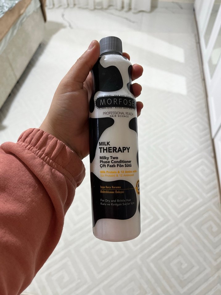 Morfose Milk Therapy, kuru ve kırılgan saçlar için doğal keratin ve vitaminlerle saçları besleyen iki fazlı sütlü saç bakım ürünüdür.