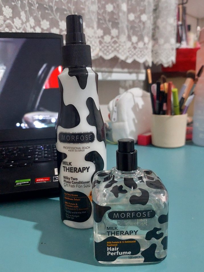 Morfose Milk Therapy saç parfümü ve bakım spreyi, saçı besleyen ve hoş koku sağlayan sütlü formüle sahiptir. Sprey şişelerde kolay kullanım sunar.