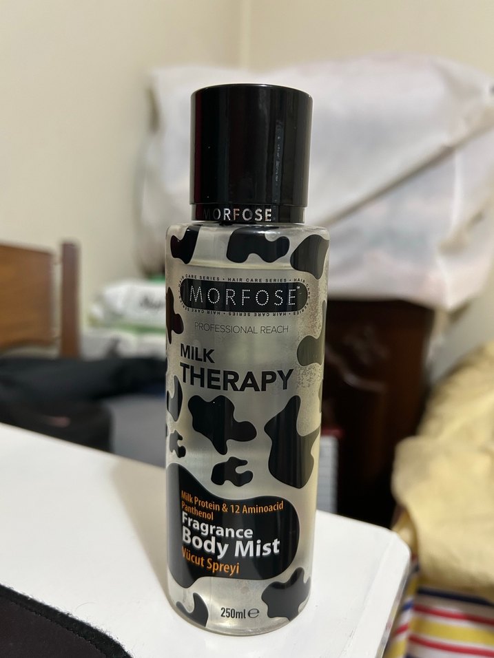 Morfose Milk Therapy vücut spreyi, süt proteini ve 12 aminoasit içerir. 250 ml şişede, ferahlatıcı ve hoş kokulu bir deneyim sunar.
