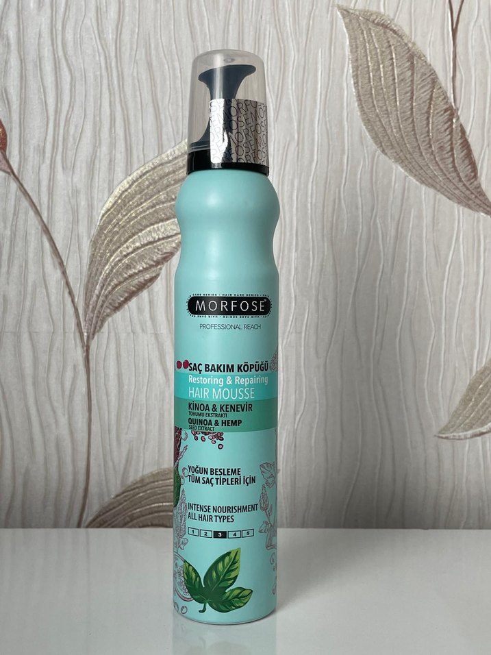 Morfose kinoa ve kenevir içeren saç bakım köpüğü, tüm saç tipleri için onarıcı ve besleyici bakım sağlar. Saçları yoğun şekilde besler ve güçlendirir. ürün sıfır hiç kullanılmadı Trendyol da210 tl