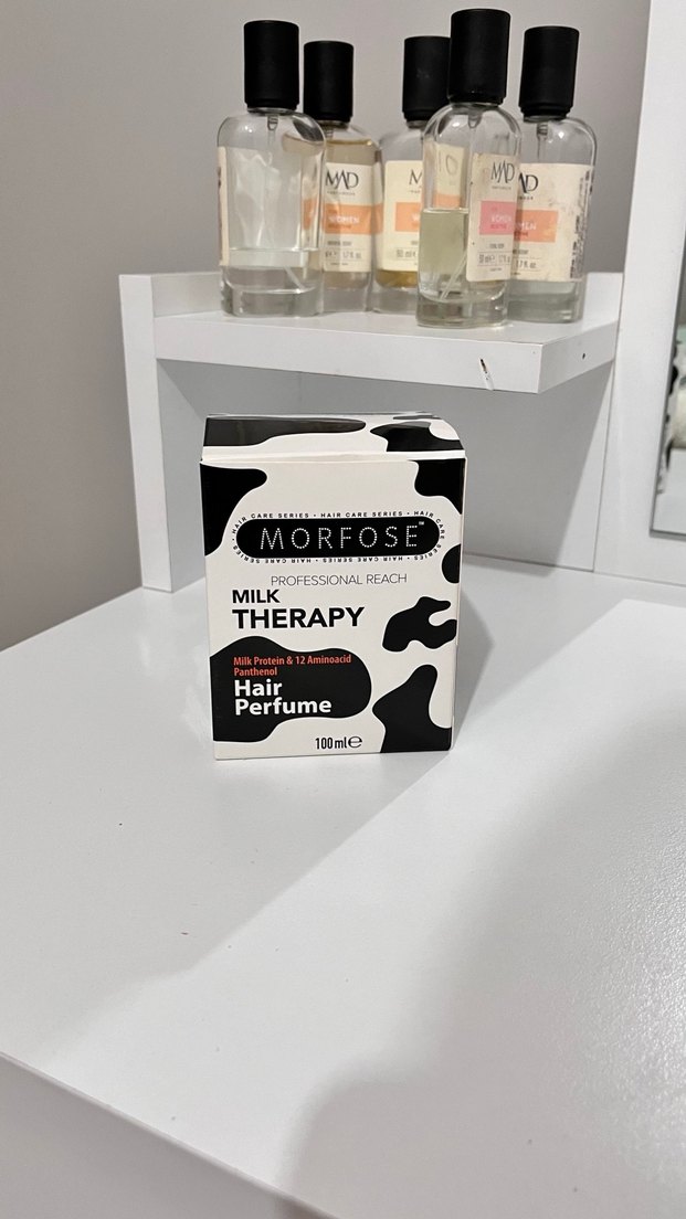 Morfose Milk Therapy Saç Parfümü, süt proteini ve panthenol içerir. Saça hoş koku verir ve bakım yapar. Hiç kullanılmadı