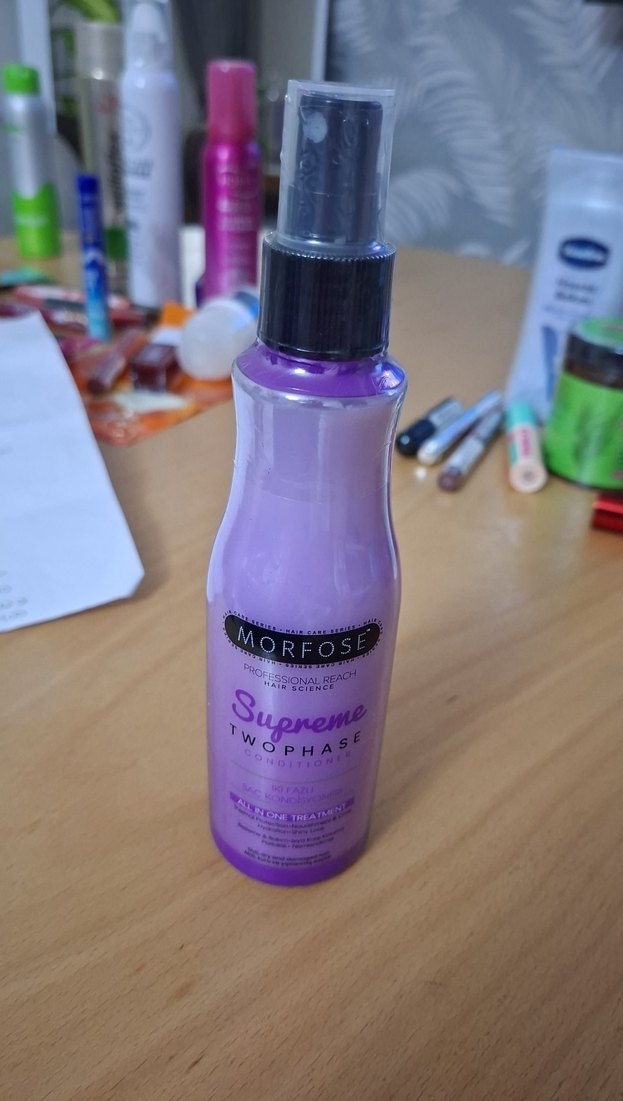 Morfose Supreme İki Fazlı Saç Bakım Spreyi, çift fazlı formülüyle saça yumuşaklık ve bakım sağlar. ♀️