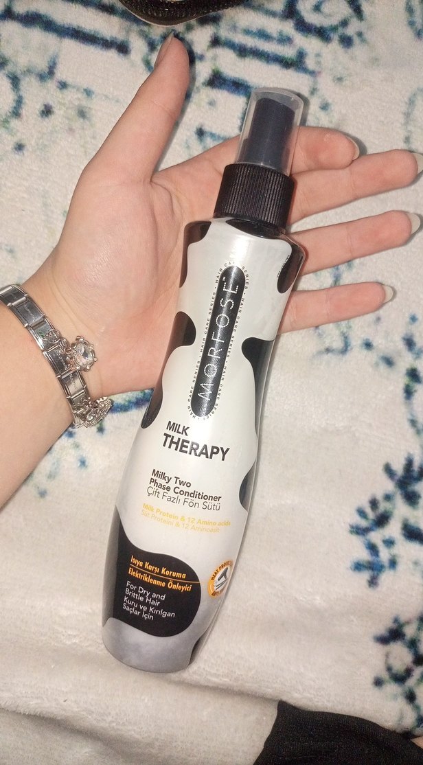 Morfose Therapy Milk, kuru saçları koruyan ve kırılmaları önleyen iki fazlı saç kremi spreyidir. Saçları yumuşak ve parlak yapar. sıfır hiç kullanmadım hediye geldi
