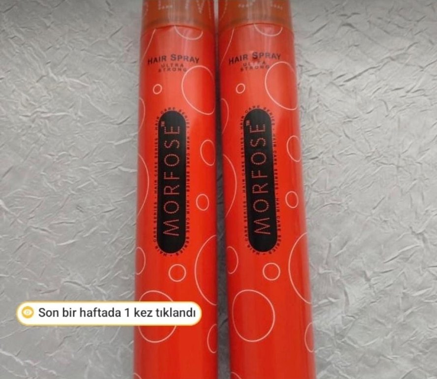 Morfose Ultra Strong saç spreyi, güçlü tutuş sağlayan iki adet sprey kutusu halinde sunulmuştur. Her kutu turuncu renkli ve dairesel desenlere sahiptir. ♂️