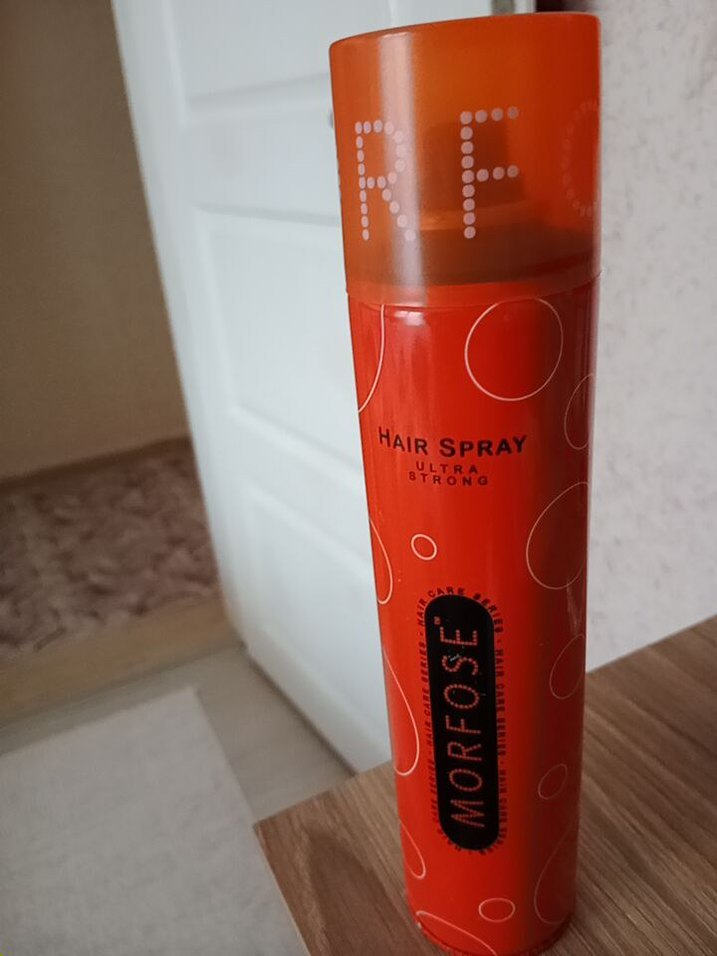 Morfose Ultra Strong saç spreyi, güçlü tutuş sağlar. Canlı turuncu kutuda ve şeffaf kapaklıdır. ♂️1 kere kullanıldı eşarp için o kadar.