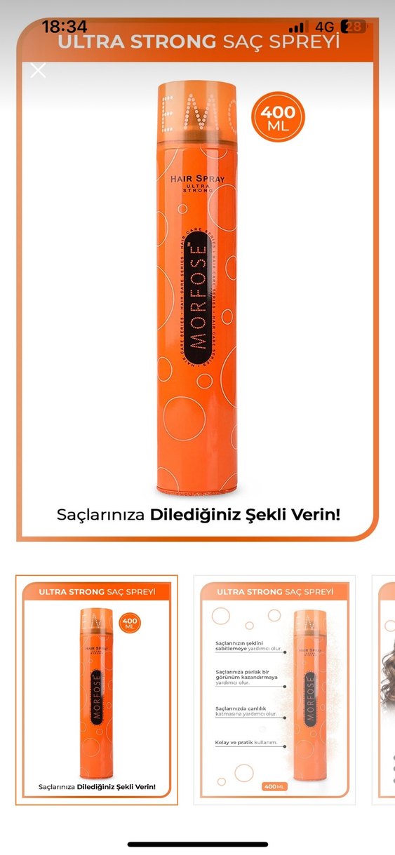 Morfoşe Ultra Strong saç spreyi, saçlarınıza güçlü tutuş sağlar, dilediğiniz şekli vermenize yardımcı olur ve parlaklık katar.