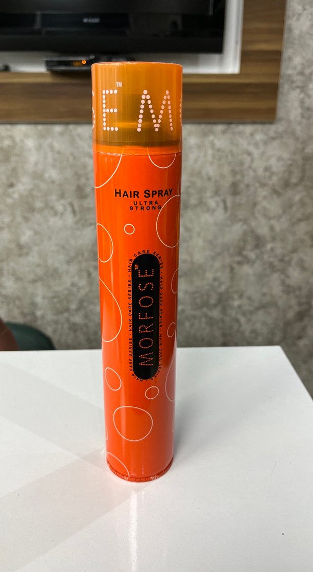 Morfose Ultra Strong saç spreyi, saç stilinizi güçlü bir şekilde sabitler. Turuncu sprey şişede ve koruyucu kapaklıdır. ♀️