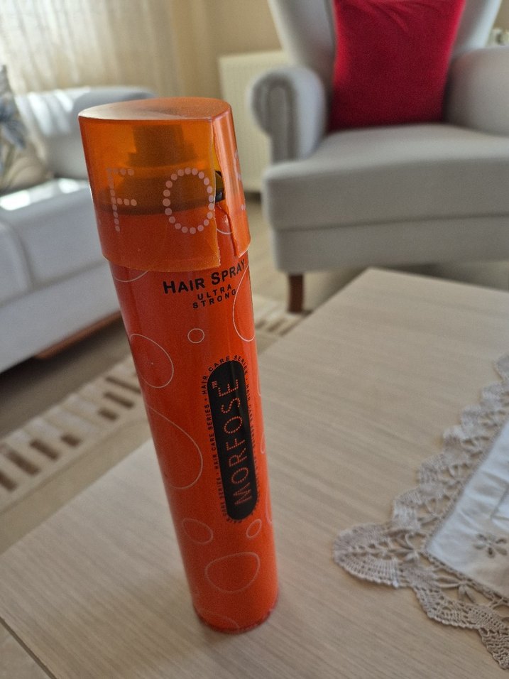 Morfoze Ultra Güçlü saç spreyi, turuncu şişede sert tutuş sağlar ve saç stilini uzun süre korur. ♀️