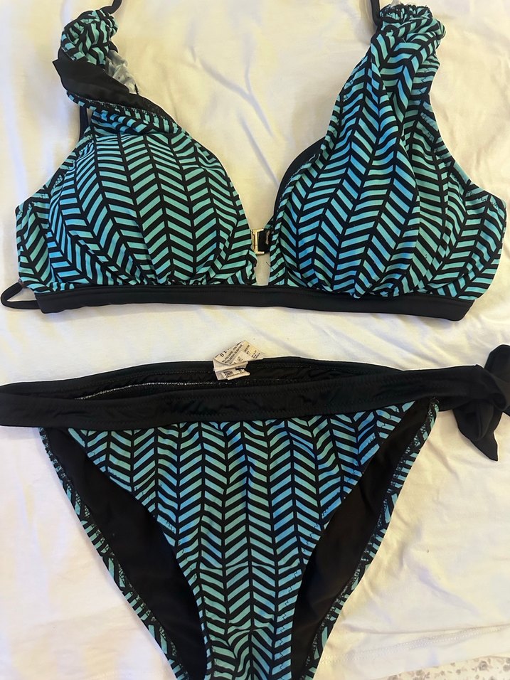 Morhipo turkuaz renkli, strappy askılı, bohem tarzda, vücuda oturan bikini. ️