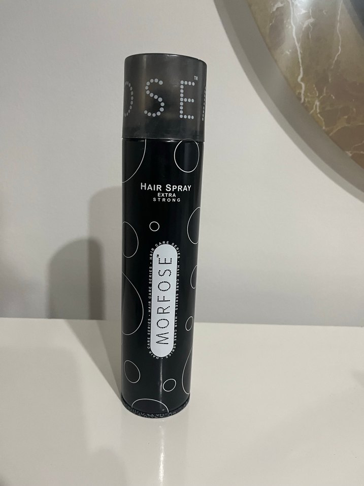 Morose Extra Strong saç spreyi, saçları güçlü bir şekilde sabitler ve gün boyu formda tutar. Siyah şişesi modern daire desenleriyle tasarlanmıştır. ♀️